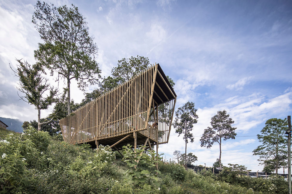 Nubes de Madera fue el nombre que un grupo de profesores y estudiantes dieron al conjunto de proyectos que realizaron en el taller de diseño y construcción de la Universidad Pontificia Bolivariana en Medellín, durante los años 2013 y 2017. Este taller vertical para estudiantes de tercer y cuarto año, llevó a cabo la construcción de diez edificios de pequeño formato en zonas rurales del departamento de Antioquia, uno cada semestre. En asocio con los municipios rurales de San Vicente Ferrer y Támesis, y con apoyo técnico de la empresa local de construcción en madera inmunizada Serye, el curso construyó edificios culturales y educativos, para comunidades vulnerables.